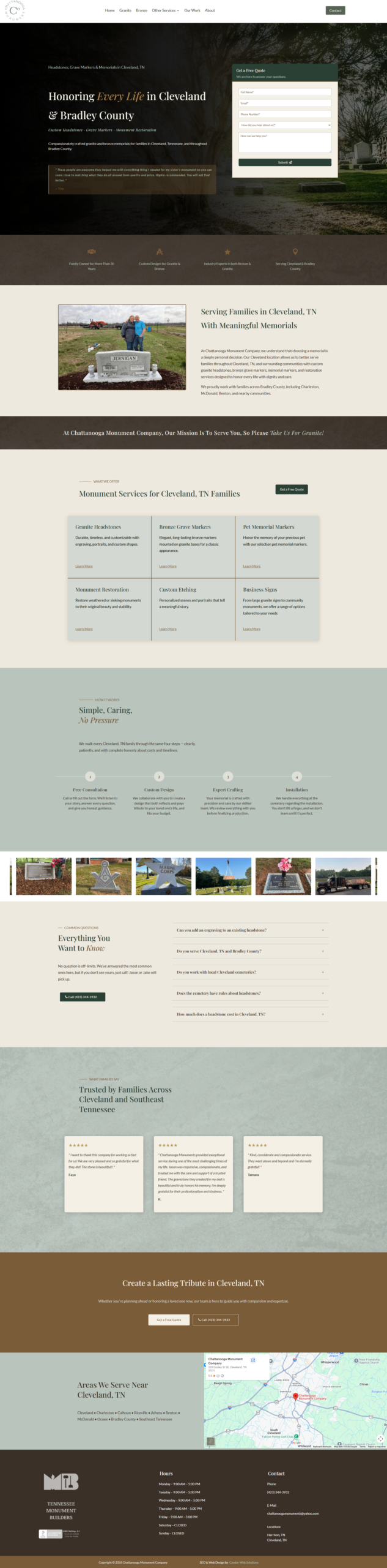 When Chattanooga Monument Company first came to Candor Web Solutions, they weren’t starting from zero; they were recovering from a frustrating experience with a previous web design agency that had over-promised and under-delivered. The problems were compounding: